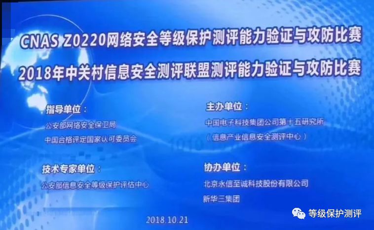 2018年10月21日,CNAS Z0220 暨2018年中关村信息安全测评联盟网络安全等级保护测评能力验证与攻防比赛在北京科技大学拉开帷幕。本次活动是全国单场规模最大、参与人数最多的网络安全等级保护测评能力验证与攻防比赛,全国30个省、直辖市、自治区的180家测评机构,其中166家网络安全等级保护测评机构,共870多名网络安全等级保护测评人员与攻防人员参与其中。